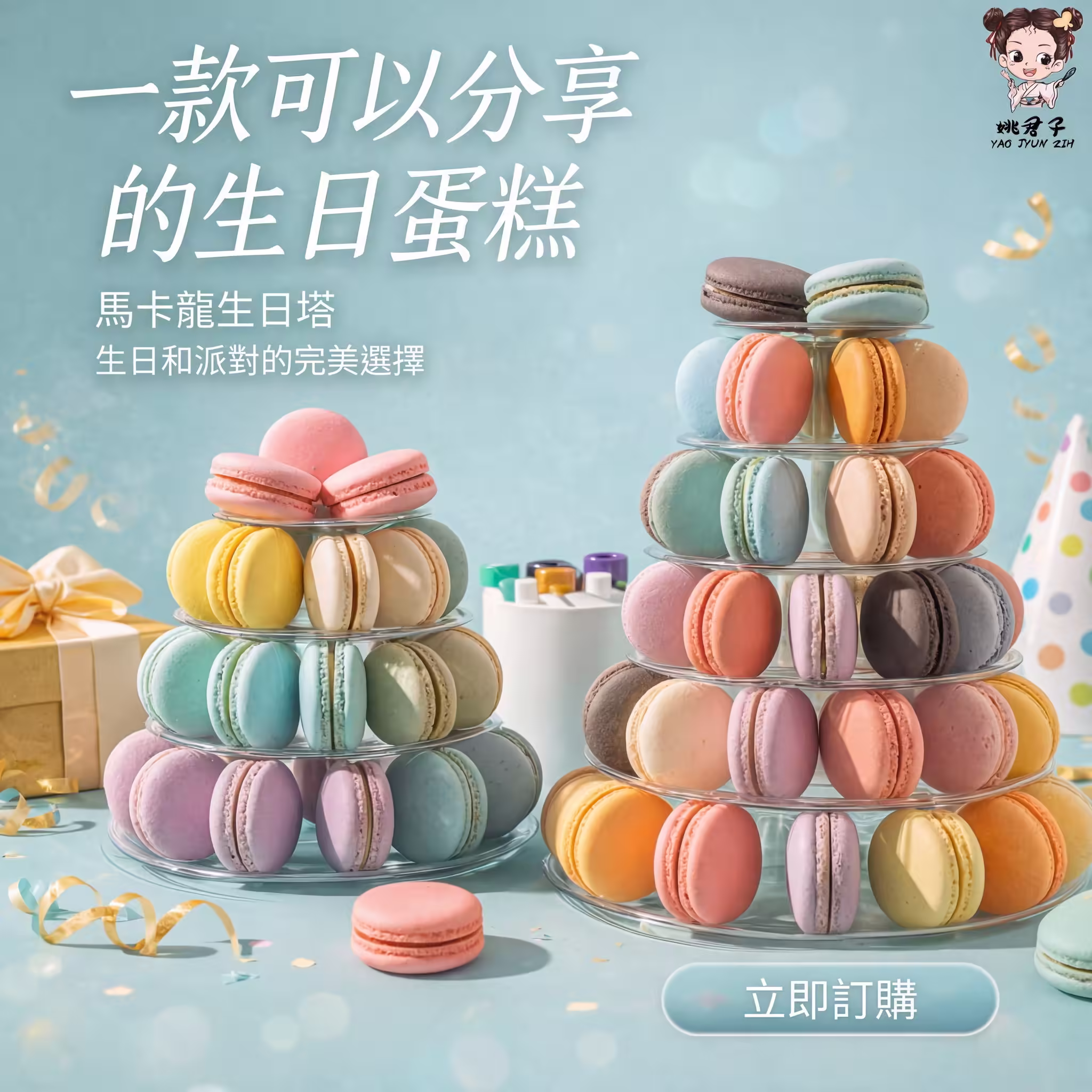 馬卡龍(12入)2盒+馬卡龍(6入)1盒+馬卡龍生日塔架+蠟燭(總共30顆馬卡龍,隨機入盒12種口味)